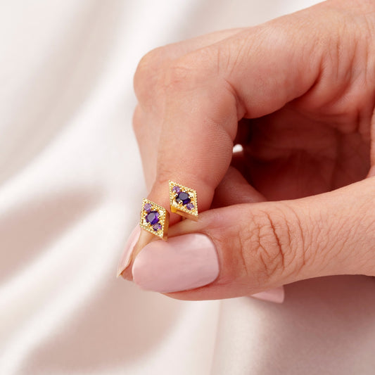 DIAMOND SHAPE AMETHYST STUD EARRINGS IN GOLD VERMEIL