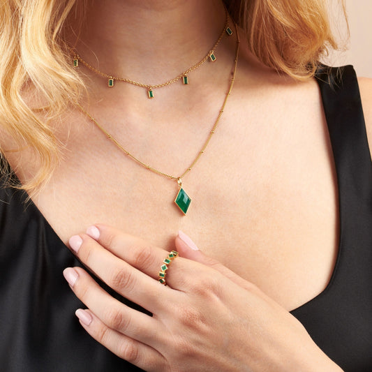 GREEN ONYX BAGUETTE DROPS CHOKER NECKLACE