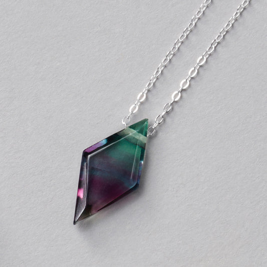 BI COLOUR RAINBOW FLUORITE DIAMOND CUT PENDANT