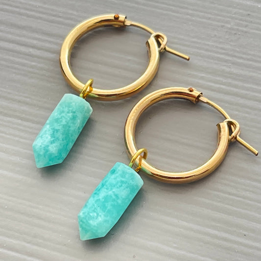 AMAZONITE SPIKE GEMSTONE HOOP EARRINGS