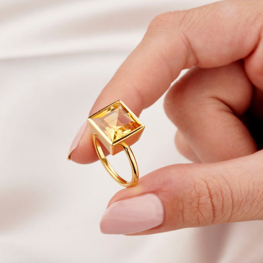 AQUA GREEN QUARTZ SQUARE RING IN STERLING SILVER