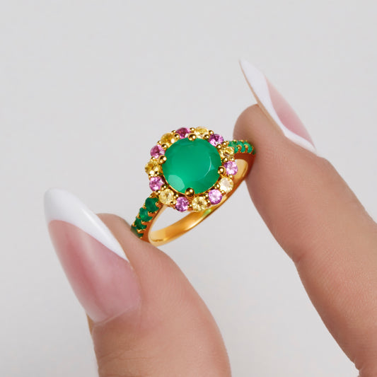 GREEN ONYX, CITRINE & RHODOLAITE CANDY COCKTAIL RING