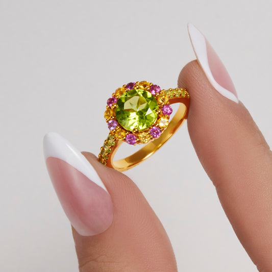 PERIDOT, RHODOLITE & CITRINE CANDY COCKTAIL RING