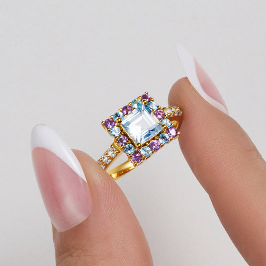 AMETHYST & BLUE TOPAZ CANDY COCKTAIL RING