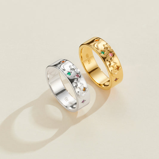COSMOS STARRY NIGHT MULTI GEMSTONE RING IN STERLING SILVER