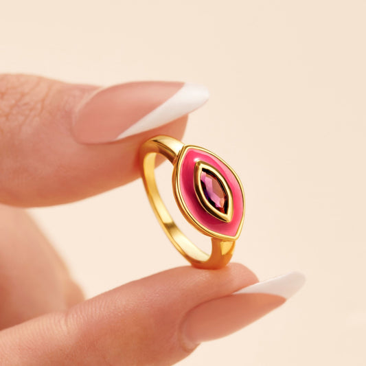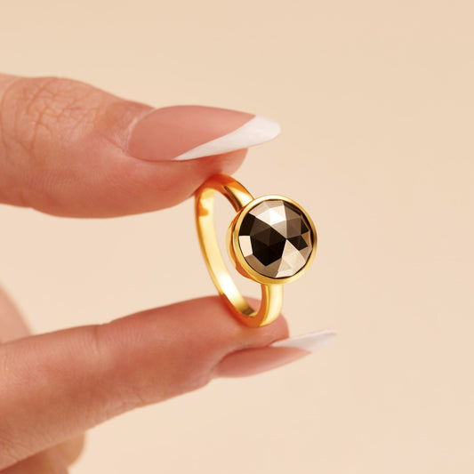 QUEEN OF HEARTS GARNET & BLACK ONYX CHARM RING