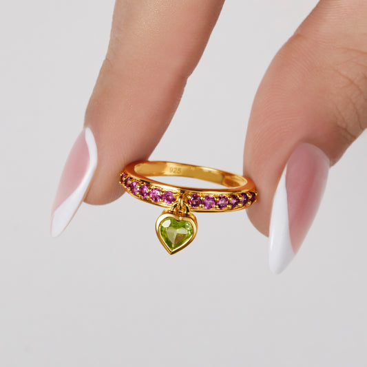 Sold outPERIDOT & RHODOLITE HEART CHARM RING
