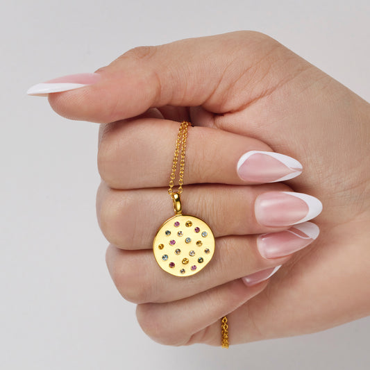 MULTI GEMSTONE SPRINKLE DISC CANDY PENDANT
