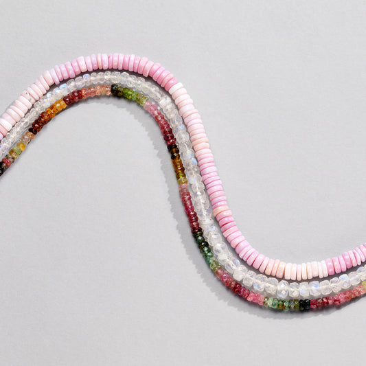 WATERMELON RAINBOW TOURMALINE GEMSTONE BEADED NECKLACE