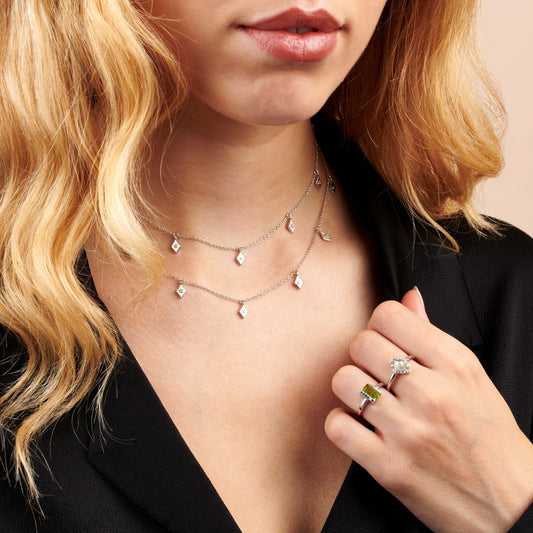 STERLING SILVER DIAMOND DROP CHOKER NECKLACE